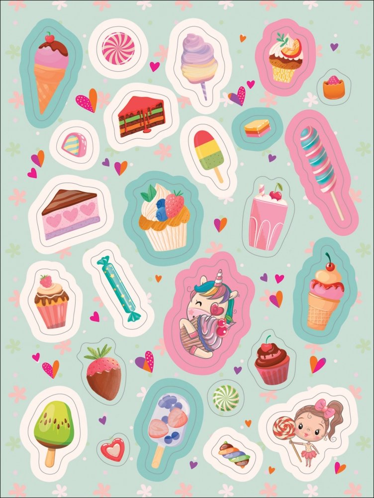Коллекция наклеек самых разных сладостей на все случаи жизни! Украшай наклейками альбомы, тетради, блокноты, открытки!