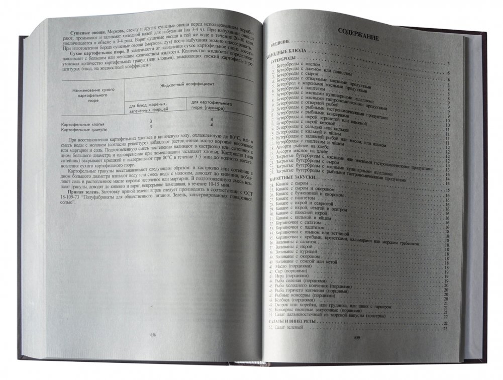 Настоящий сборник содержит разделы: холодные блюда; супы; блюда из картофеля, овощей и грибов; блюда из круп; блюда из макаронных изделий; блюда из яиц; блюда из творога; блюда из рыбы, морепродуктов и раков; блюда из мяса и мясных продуктов; блюда из сельскохозяйственной птицы, пернатой дичи и кролика; гарниры; соусы; сладкие блюда; напитки; коктейли; мучные изделия; украинские национальные блюда.