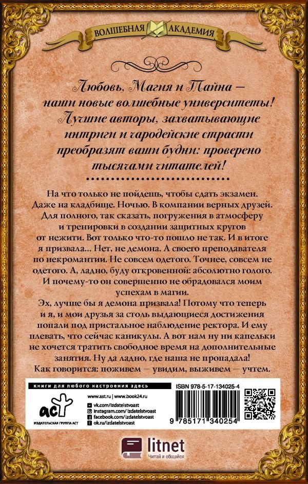 На что только не пойдешь, чтобы сдать экзамен. Даже на кладбище. Ночью. В компании верных друзей. Для полного, так сказать, погружения в атмосферу и тренировки в создании защитных кругов от нежити. Вот только что-то пошло не так. И в итоге я призвала… Нет, не демона. А своего преподавателя по некромантии. Не совсем одетого. Точнее, совсем не одетого. А, ладно, буду откровенной: абсолютно голого. И почему-то он совершенно не обрадовался моим успехам в магии.