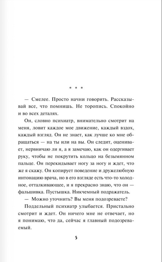 Знаете ли вы, что нашей мимикой управляет более пятидесяти лицевых мышц? И если научиться напрягать и расслаблять их по своему усмотрению, то можно полностью избавиться от морщин или убрать двойной подбородок, выровнять нос, увеличить губы… Да все, что угодно! Можно изменить себя до неузнаваемости и стать совершенно другим человеком — ребенком, женщиной, стариком… Аркадий овладел этим искусством в совершенстве — в считаные секунды он может превратиться в кого угодно. Он всего лишь хотел стать похожим на Чарли Чаплина. А его обвиняют в серии жестоких убийств. Его любимая Рита, непостижимая, загадочная, сотканная из тайны и красоты, часто пропадала по ночам. И тогда он понял: маньяк — это она. Это она медленно убивала людей, наслаждаясь их мучениями, и с каждого убитого срезала лицо. Но как трудно доказать это следователю и психиатру! Надо дождаться, когда Рита останется одна в пустой комнате. Чтобы никто не видел, как Аркадий приближается к ней. Чтобы никто не узнал, как он любит ее…