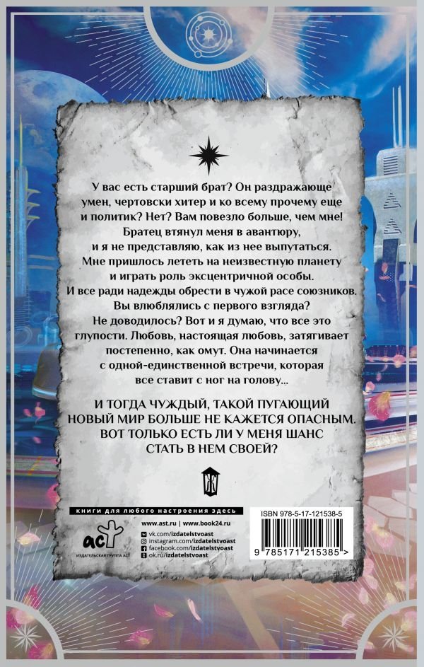 Братец втянул меня в авантюру, и я не представляю, как из нее выпутаться. Мне пришлось лететь на неизвестную планету и играть роль эксцентричной особы. И все ради надежды обрести в чужой расе союзников.