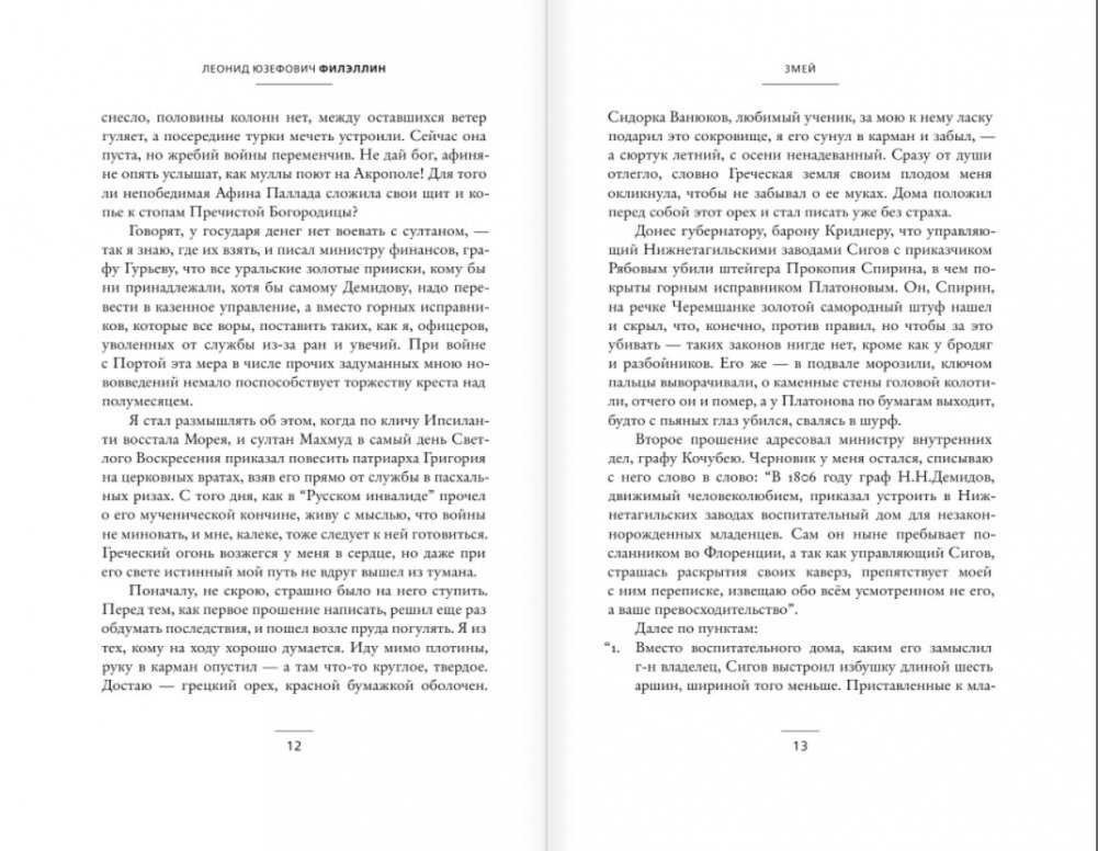 Филэллин — «любящий греков». В 20-х годах XIX века так стали называть тех, кто сочувствовал борьбе греческих повстанцев с Османской империей или принимал в ней непосредственное участие. Филэллином, как отправившийся в Грецию и умерший там Байрон, считает себя главный герой романа, отставной штабс-капитан Григорий Мосцепанов. Это персонаж вымышленный. В отличие от моих документальных книг, здесь я дал волю воображению, но свои узоры расшивал по канве подлинных событий. Действие завязывается в Нижнетагильских заводах, продолжается в Екатеринбурге, Перми, Царском Селе, Таганроге, из России переносится в Навплион и Александрию, и завершается в Афинах, на Акрополе. Среди центральных героев романа — Александр I, баронесса-мистик Юлия Криднер, египетский полководец Ибрагим-паша, другие реальные фигуры, однако моя роль не сводилась к выбору цветов при их раскрашивании. Реконструкция прошлого не была моей целью. «Филэллин» — скорее вариации на исторические темы, чем традиционный исторический роман.