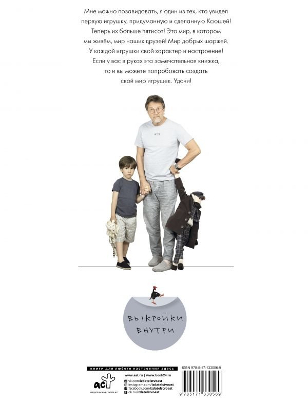 Эта книга — полностью «игрушечная жизнь» Оксаны Ярмольник. Она — художник, дизайнер, автор модных коллекций, художник‑постановщик театра и кино. 20 лет назад она сшила свою собственную игрушку и с тех пор эти игрушки знакомы и любимы всеми известнейшими людьми и всеми неравнодушными к предметам чуда. Эта книга — о творчестве, труде, таланте, о дружбе, о вкусе и понимании жизненных ценностей. Татьяна Анатольевна Тарасова с фигурстками‑гимназистками, Николай Фоменко с Пушкиным, Владимир Пресняков — с Натальей Гончаровой, Юрий Башмет — со своим двойником, скрипачем. Известнейший врач, Дмитрий Пушкарь — со своими помощниками: врачами таксой и хирургом‑бегемотом. Книгу интересно читать с первых страниц: лучший рассказчик Александр Адабашьян написал предисловие. Далее Оксана, с шутками и легкостью открывает свой круг, повествует о своей творческой жизни, показывает свои игрушки и своих друзей. Актеры, актрисы, певцы, художники — все с удовольствием фотографируются с неповторимыми игрушками Оксаны. Вдохновение, желание сшить такую же игрушку здесь же может быть удовлетворено — Оксана дала выкройки некоторых персонажей. Собрать такой круг в одной книге могла только Оксана, потому что ее игрушки, ее художественный вкус, ее отношение к своим близким и друзьям — все на виду здесь в каждой строчке, и юбочке, и пальто, и хвостике, и носике сшитых людей и животных.