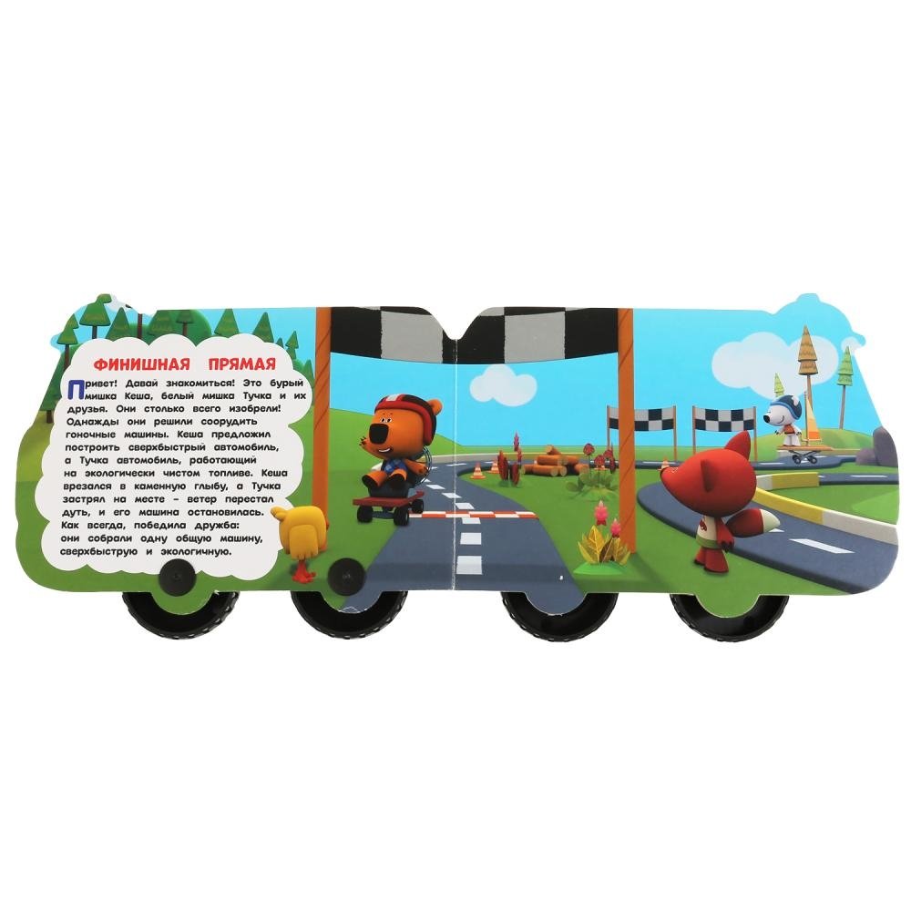 Маленький любознайка с удовольствием будет слушать историю о приключениях персонажей любимого мультфильма, рассматривать яркие картинки и играть с подвижными элементами-колёсами. Читая книгу вместе с родителями, малыш расширит словарный запас и кругозор. Благодаря удобному формату книгу можно взять с собой в дорогу.