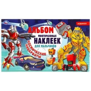 Альбом многоразовых наклеек для мальчиков «Космические киберботы» ТМ «УМка» станет прекрасным подарком для вашего ребёнка: