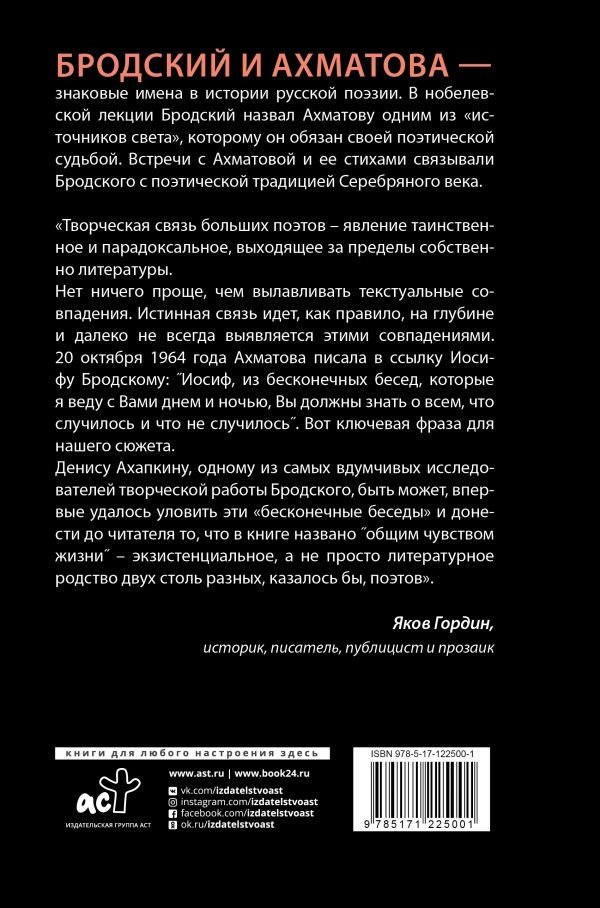 биографии — и некоторые особенности ахматовского поэтического языка хорошо слышны в стихах Бродского. Книга сочетает разговор о судьбах поэтов с разговором о конкретных стихотворениях и их медленным чтением.