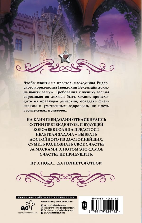 На клич Гвендолин откликнулись сотни претендентов, и будущей королеве солнца предстоит нелегкая задача – выбрать достойного из достойнейших, суметь распознать свое счастье за масками, а потом это самое счастье не придушить.