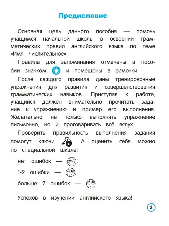 Пособие содержит правила и упражнения по английскому языку для отработки лексико-грамматических навыков по теме "Имя числительное". В конце тренажёра есть ключи, которые помогут проверить правильность выполнения заданий. Оценить свои знания можно по специальной шкале самооценки.