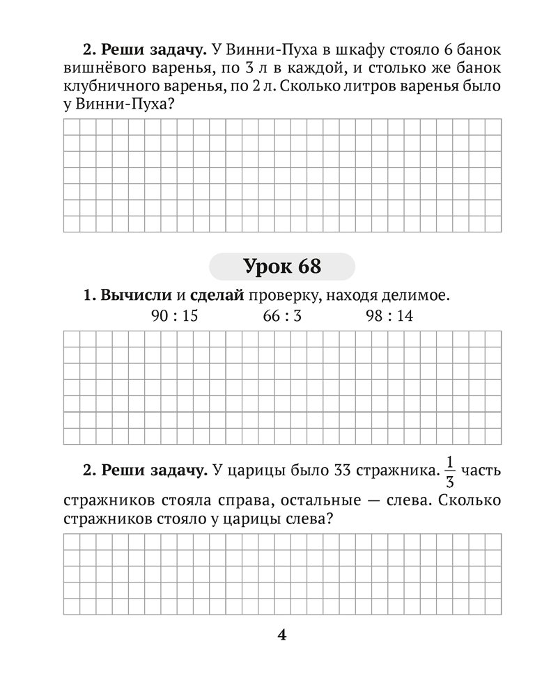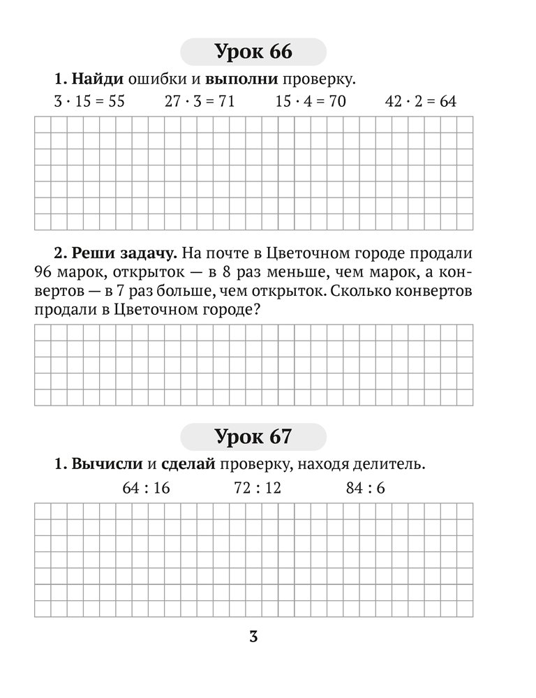 Пособие соответствует учебной программе для 3 класса и содержит альтернативные варианты домашнего задания по математике. Материал разделён на уроки, которые включают упражнения для отработки вычислительных навыков и текстовые задачи. Занимаясь по тетради, третьеклассники смогут проверить и закрепить полученные знания.