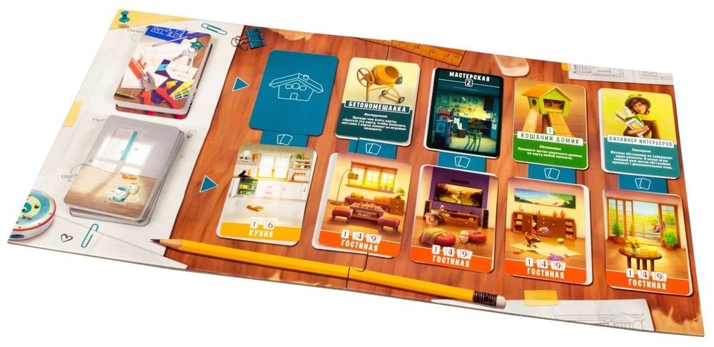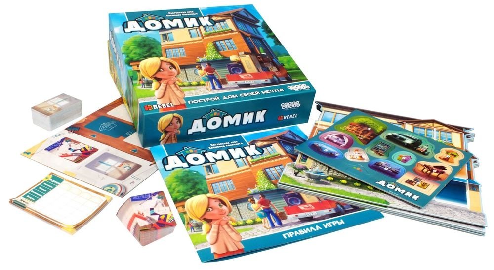 Настольная игра "Домик" — это весёлое состязание соседей за самый красивый и уютный дом. Выбирайте карты комнат, инструментов, мебели и следите, чтобы самое лучшее не забрали соперники. Размещайте карты в своём доме так, чтобы комнаты были просторными, а рояль оказался в гостиной, а не в чулане. Чтобы получить бонусные очки за удобство, поставьте на каждом этаже по ванной, обустройте рядом с кухней кладовку, а в гараже разгребите место под новенький автомобиль. И пусть ваш дом будет соседям на зависть!