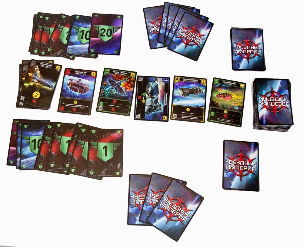 «Звёздные империи» — колодостроительная игра для 2-6 человек на космическую тематику. Игрокам необходимо атаковать друг друга, для снижения очков влияния. Используя различные комбинации карт, игроки сами выбирают свою стратегию во время партии, вырабатывают защиту от атак противника и ищут бреши в обороне противника. Можно идти разными путями, пользоваться силой, хитростью или богатством, но всем одинаково понадобятся мастерство и немного удачи!