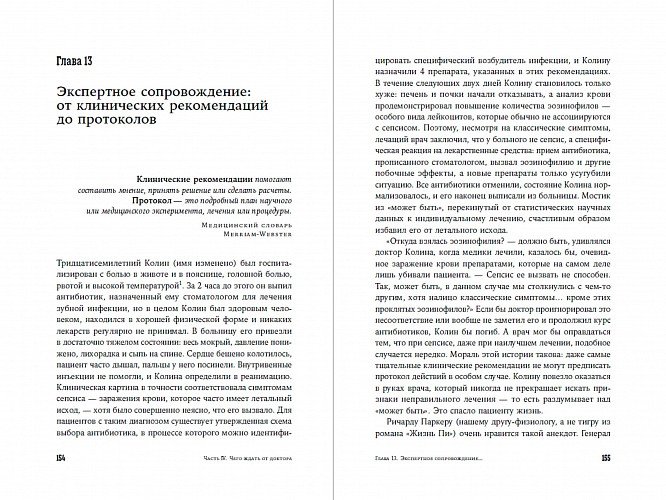 Кеннет Бригам и Майкл Джонс много лет проработали в американской системе здравоохранения. На основании своего опыта они пришли к глубоким и точным выводам. Например, что лечение проходит лучше, когда пациент дотошен, а его лечащий врач не считает себя непогрешимым, и они тесно общаются между собой.