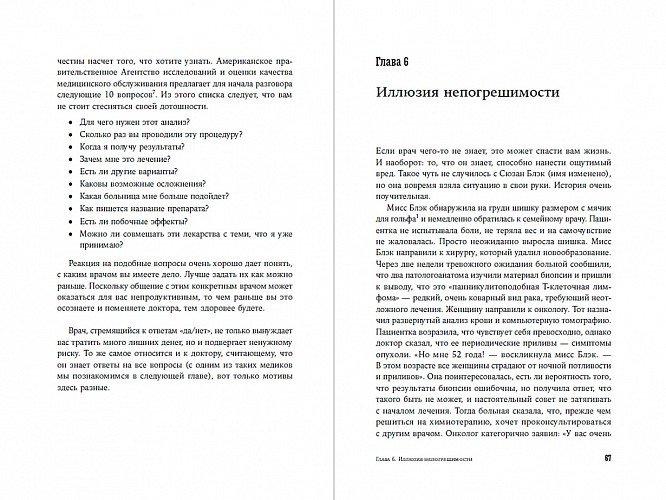 Авторы дают множество практических советов: можно ли безоговорочно доверять врачебным рекомендациям, как задавать правильные вопросы вовремя, чего ждать от пребывания в больнице и когда стоит задуматься о том, чтобы выбрать себе другого специалиста.