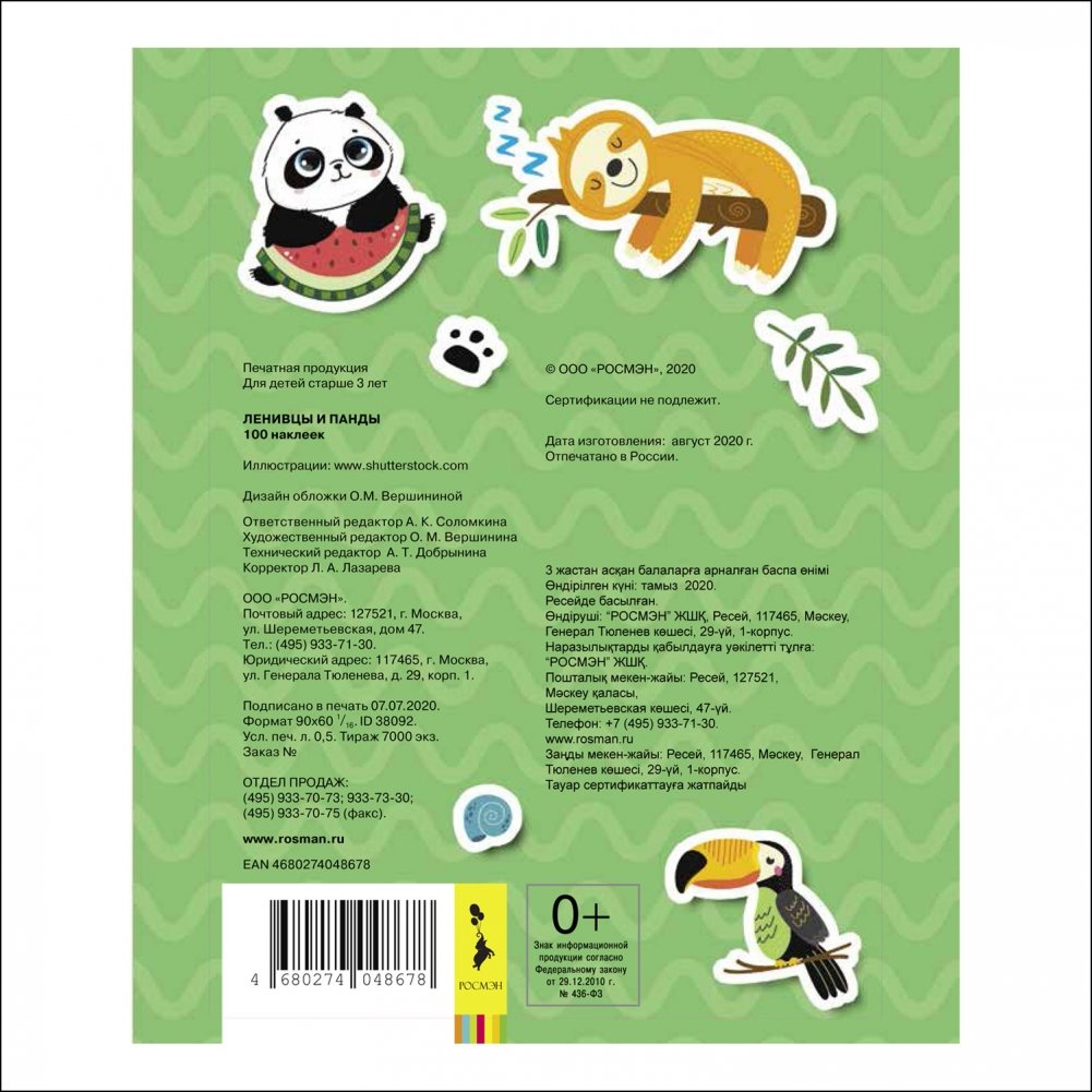 100 наклеек. Ленивцы и панды