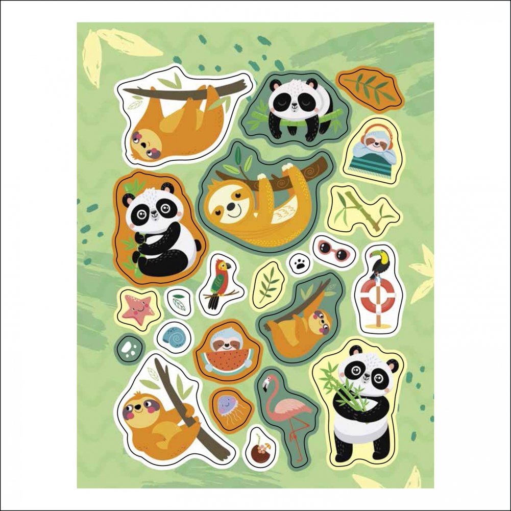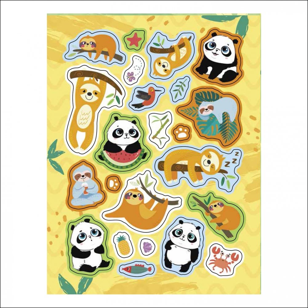 Коллекция ярких, ми-ми-мишных наклеек с самыми симпатичными, милыми ленивцами и самыми обаятельными пушистыми пандами! Украшайте наклейками свои альбомы, тетради, дневники, рисунки, блокноты, открытки и даже комнаты. Используйте их в игре и творчестве! Наклейки не только красивы, но и полезны, ведь занятия детей наклейками способствуют развитию речи, мелкой моторики, координации движений, развитию внимания, интеллекта, зрительного восприятия и творческого мышления. А еще наклейки помогут сделать жизнь ярче!