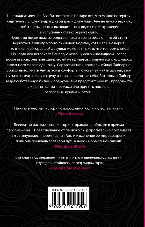 Шестнадцатилетняя Ава Ли потеряла в пожаре все, что можно потерять: родителей, лучшую подругу, свой дом и даже лицо. Аве не нужно зеркало, чтобы знать, как она выглядит, – она видит свое отражение в испуганных глазах окружающих.
