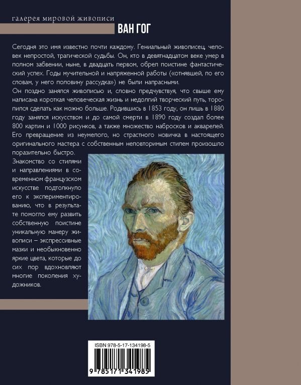 Винсент Ван Гог — всемирно известный нидерландский художник, яркий представитель живописи постимпрессионизма. Его короткая и трагическая судьба была полна непредсказуемых поворотов и резких виражей. Из 37 лет своей жизни лишь 10 он отдал искусству, но даже за этот короткий срок Ван Гог успел создать огромное количество произведений и прославиться как живописец, рисовальщик, офортист и литограф. В этом красочном альбоме, рассказывающем о жизни и творчестве мастера, собраны самые известные произведения разных лет и периодов его творчества.