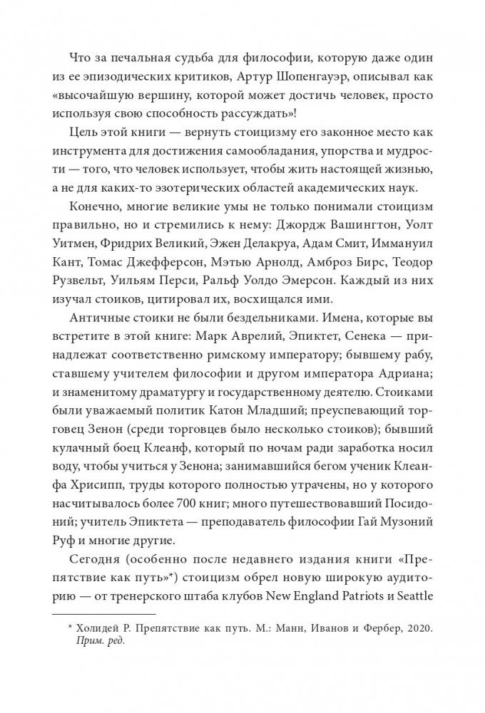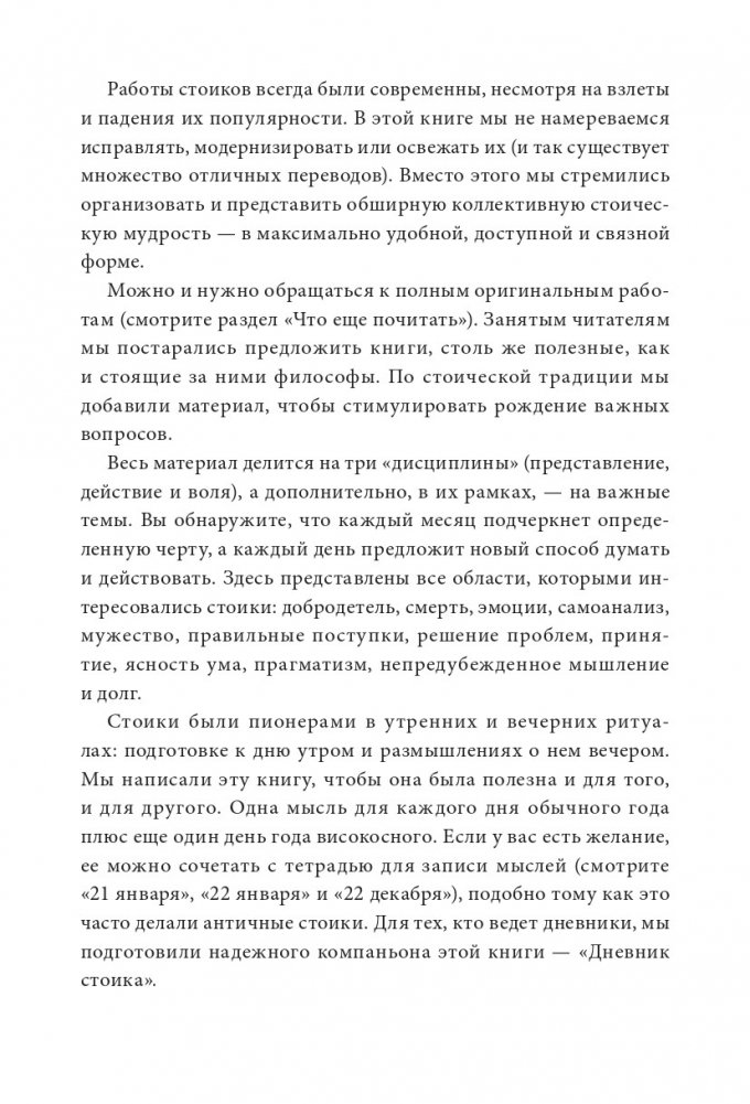 Райан Холидей и Стивен Хансельман изучили работы великих философов-стоиков и выбрали по одной мысли на каждый день года. Авторы проанализировали каждую из них, дополнили историями и упражнениями — вы сможете лучше понять, о чем идет речь, и найти ответы на волнующие вас вопросы.