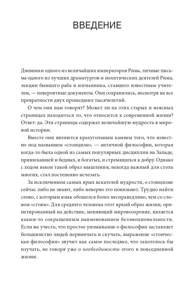 Родившийся в бурном античном мире, стоицизм нацелен на непредсказуемую природу жизни и не теряет своей актуальности. Эта книга возвращает ему законное место — инструмента для достижения самообладания, упорства и мудрости.