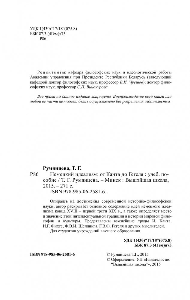 Опираясь на достижения современной историко-философской науки, автор раскрывает содержание идей немецкого идеализма конца XVII - первой трети XIXв., а также определяет место и значение этой интеллектуальной традиции в истории мировой философии и культуры. Представлены важнейшие труды И Канта, И.Г. Фихте, Ф.В.И.Шеллинга, Г.В.Ф. Гегеля и других мыслителей.