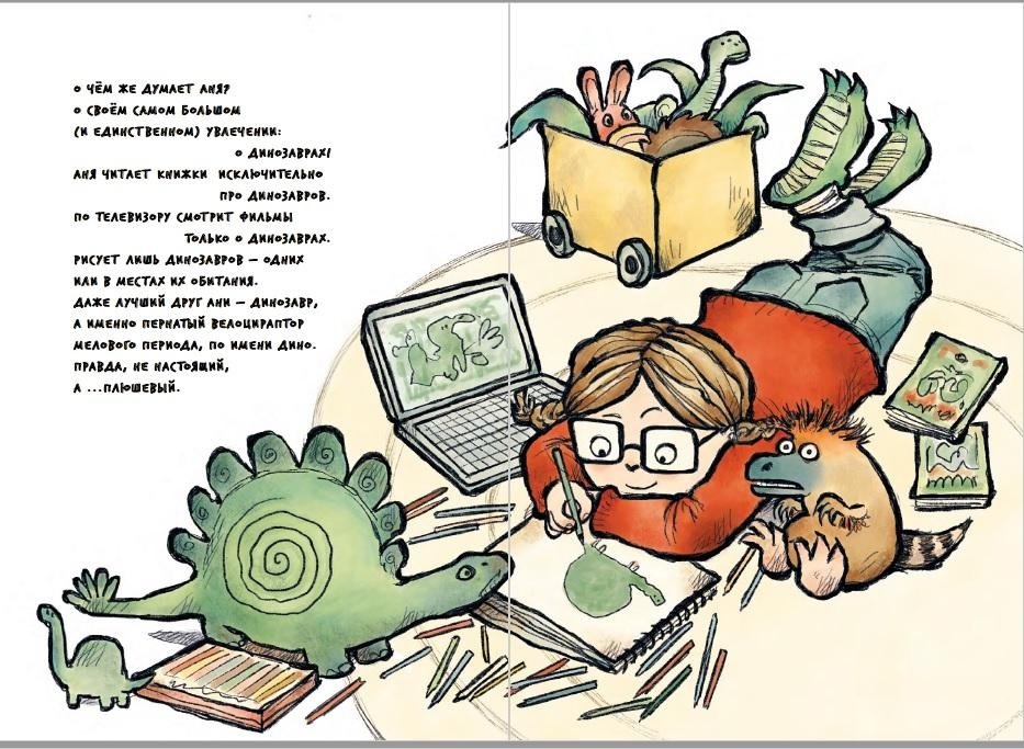 она настоящая девочка Юрского периода! Она рисует только динозавров, а ещё собирает коллекцию фигурок. Даже на школьный праздник Аня пришла в костюме тираннозавра! Интересно, что случится, если произнести волшебное слово, и динозавры вдруг оживут? Эта книга не только о любви к палеонтологии, но и о том, как ребёнку справиться со своими страхами в самых разных повседневных ситуациях: в школе, в кабинете зубного врача и даже в бассейне!