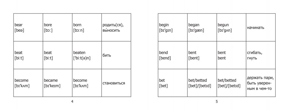 В книге представлены наиболее часто употребляемые неправильные глаголы английского языка.