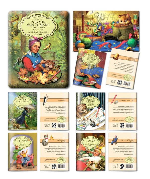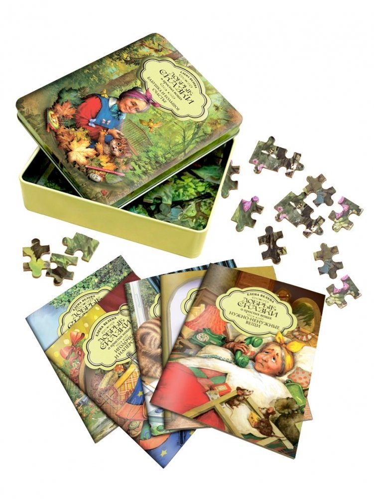Набор в жестяной коробочке "Бабушка и большое счастье": 5 мини-книг. Пазл (60 деталей)