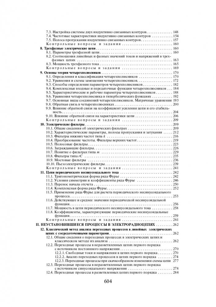 Рассматриваются электромагнитные процессы в линейных электрических цепях. Описываются резонансные явления в последовательных и параллельных колебательных контурах, в системе связанных контуров. Излагаются основы четырехполюсников и электрических фильтров, методы анализа переходных процессов в линейных цепях, методы анализа электрических цепей с распределенными параметрами, основы синтеза линейных электрических цепей.
