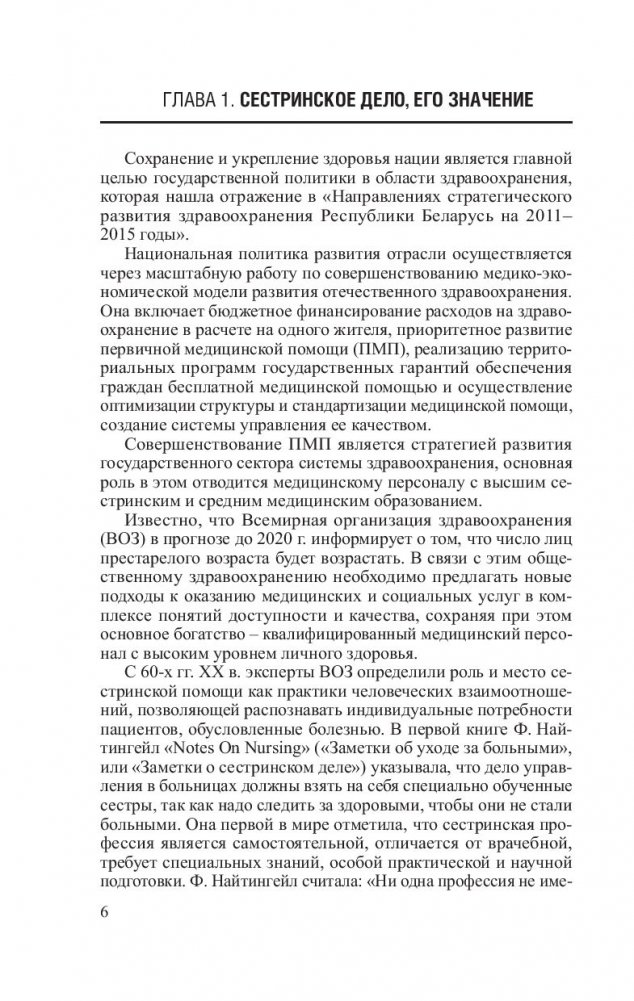 Освещены вопросы, касающиеся сестринского процесса, истории развития сестринского дела, соблюдения прав пациента, получения информированного добровольного согласия на медицинское вмешательство, врачебной тайны, сестринских ошибок. Имеется информация о современных моделях сестринского ухода за пациентом, месте сестринского дела в сохранении и укреплении здоровья людей на основе профилактической медицины.