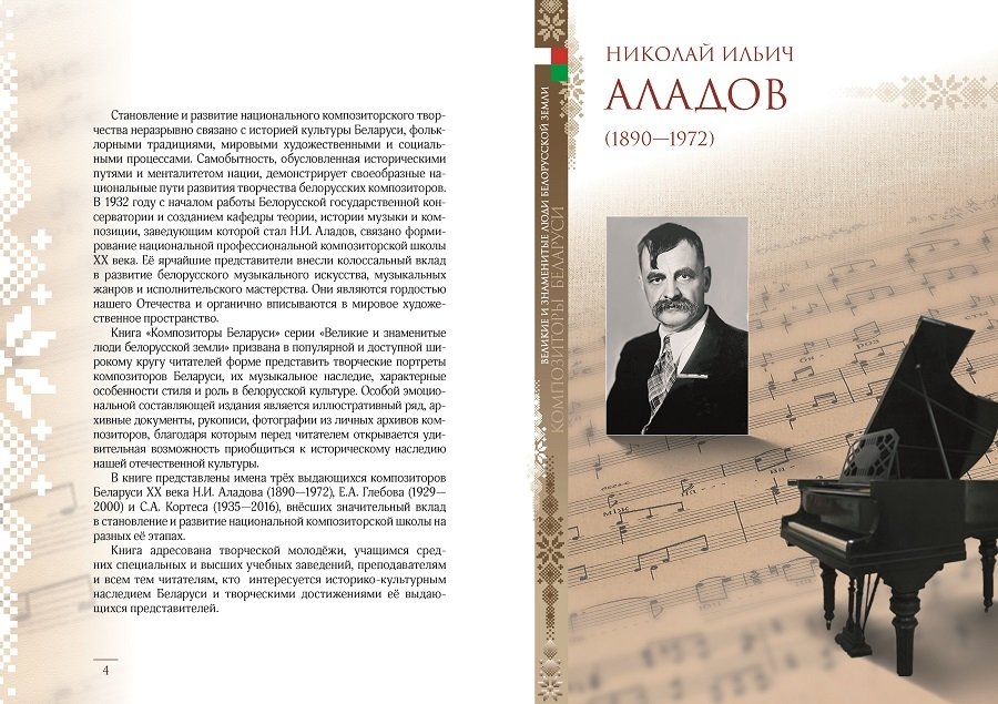 В книге в популярной форме представлен жизненный путь, музыкальное творчество и деятельность трёх выдающихся белорусских композиторов ХХ века — Николая Аладова, Евгения Глебова и Сергея Кортеса. В основу книги положены уникальные архивные документы, письма, рукописи, воспоминания современников. Авторы предлагают окунуться не только в музыкальную культуру минувшего столетия, но и соприкоснуться с национальной историей через выдающихся её представителей. Книга рассчитана как на профессиональных музыкантов, учащихся, студентов, преподавателей, так и тех, кто интересуется музыкально-культурным наследием белорусского народа.