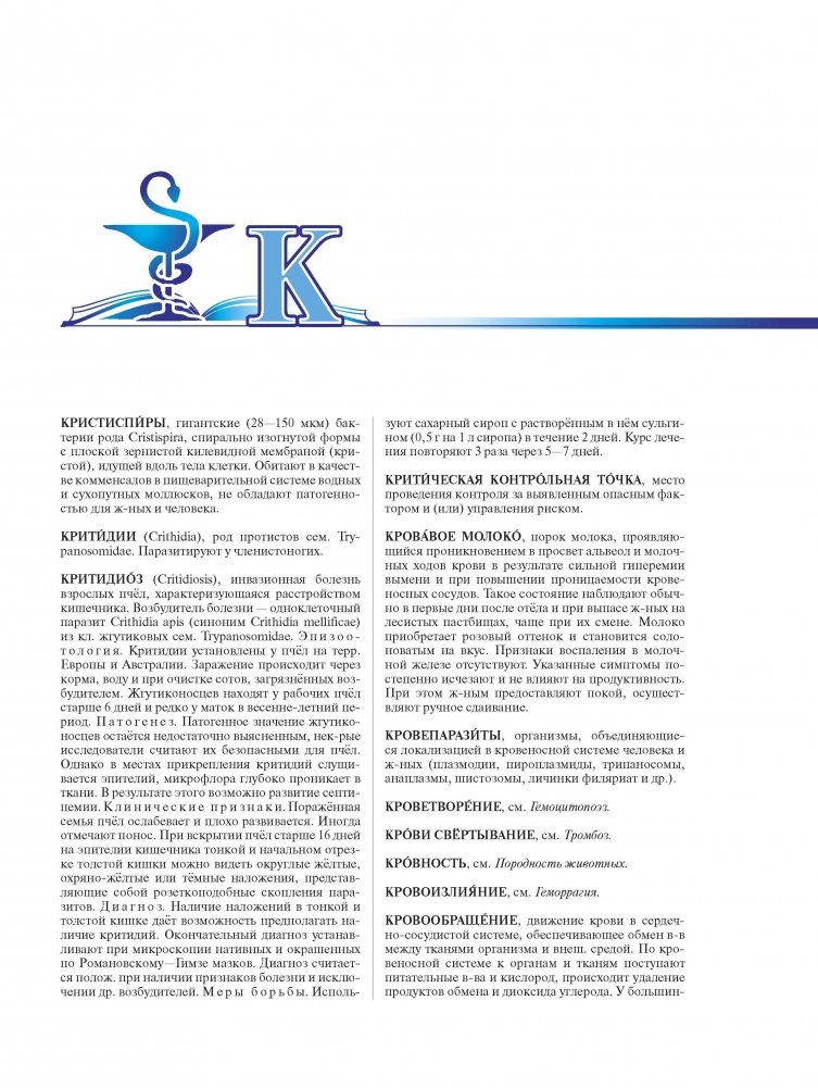 «Ветеринарная энциклопедия» — новое научно-справочное издание, в котором содержатся практически все сведения по анатомии, физиологии, профилактике и лечению болезней, кормлению и содержанию сельскохозяйственных животных. Книга не имеет аналогов на территории СНГ. В создании энциклопедии принимали участие ученые-специалисты Витебской государственной академии ветеринарной медицины, Института экспериментальной ветеринарии имени С.Н. Вышелесского и Белорусского государственного ветеринарного центра. Большая часть статей первого тома энциклопедии посвящена болезням животных, их распространению, распознаванию, методам лечения и профилактики. Ряд статей посвящен ветеринарно-санитарной экспертизе продуктов животноводства, радиологии, зоогигиене, организации ветеринарного дела в государственных и фермерских хозяйствах. Надлежащее внимание уделено способам доврачебной помощи больным животным, использования лекарственных растений для их лечения и осветления смежных с животноводством и ветеринарией вопросов общей биологии, зоологии, биохимии и биофизики. Энциклопедия предназначена для ветеринаров, зоотехников, фермеров, преподавателей, студентов средних и высших учебных заведений, специальных ветеринарных учреждений и широкого круга читателей.