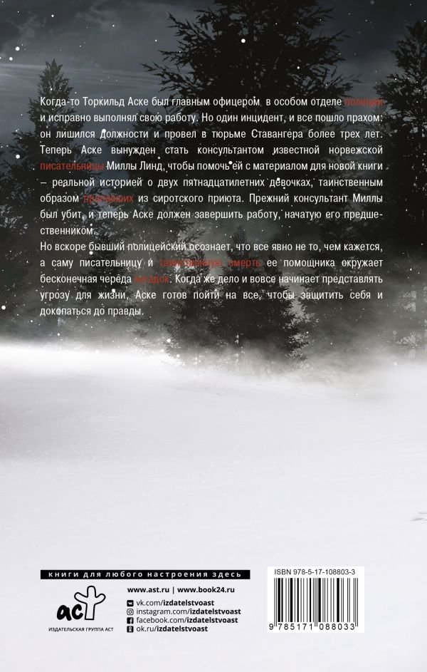 Когда-то Торкильд Аске был главным офицером в особом отделе полиции и исправно выполнял свою работу. Но один инцидент и всё пошло прахом: он лишился должности и провел в тюрьме Ставангера более трех лет. Перебиваясь подработками, Аске соглашается стать консультантом известной норвежской писательницы Миллы Линд, чтобы помочь ей с материалом для новой книги-- реальной историей о двух пятнадцатилетних девочках, таинственным образом пропавших из сиротского приюта. Прежний консультант Миллы был застрелен, и теперь Аске должен закончить работу, начатую им.
