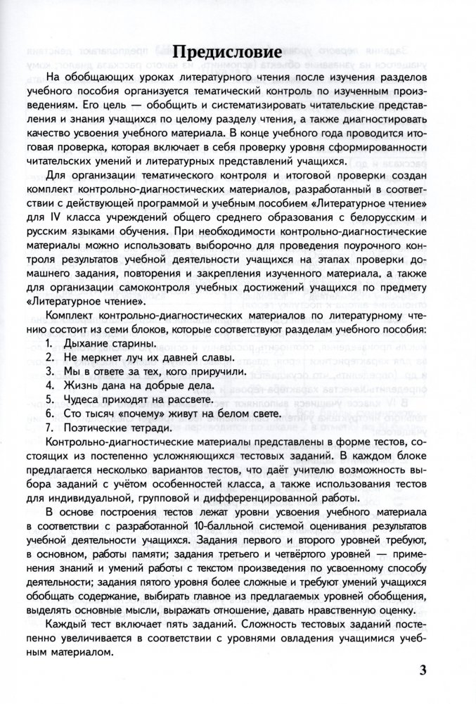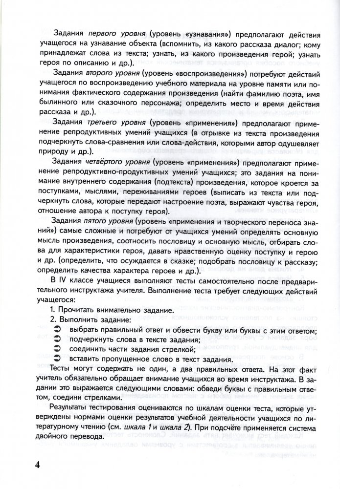 Предлагаемые контрольно-диагностические материалы составлены в соответствии с действующей программой по литературному чтению для 4-го класса и приведены в порядке следования разделов учебного пособия.