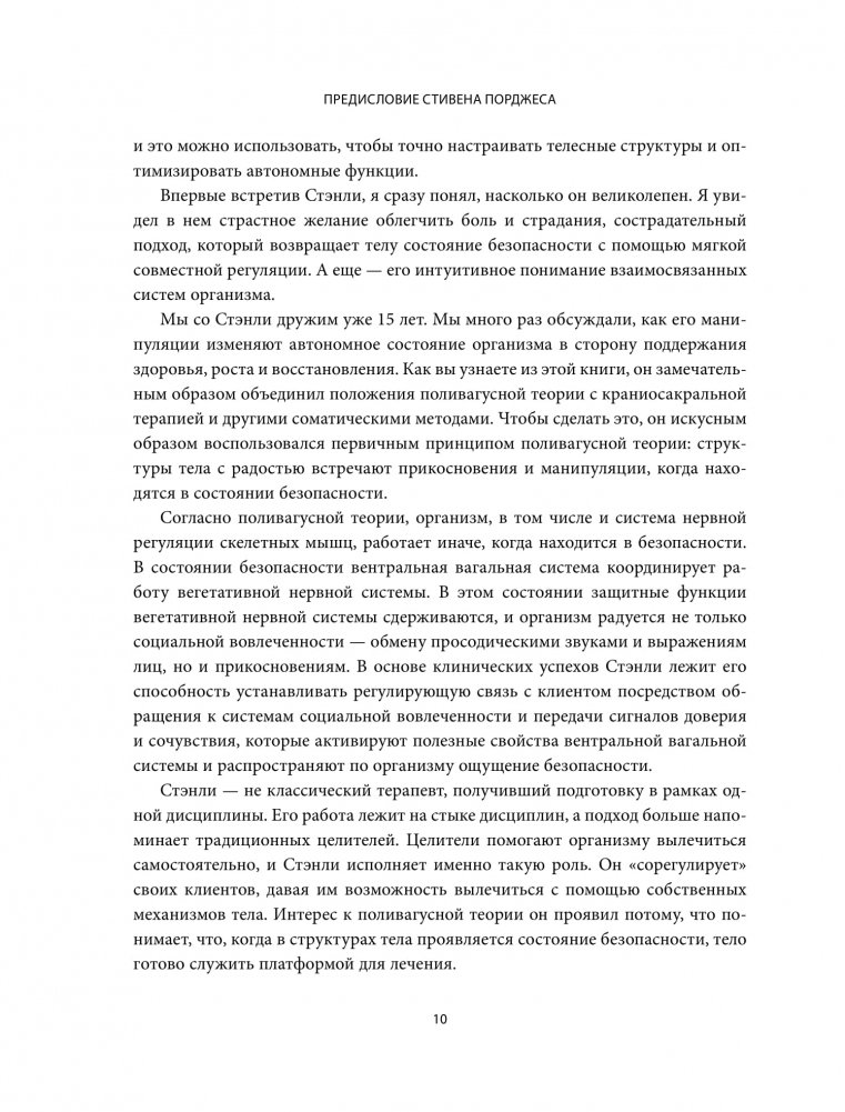 Под руководством автора читатели освоят понятные и простые в исполнении упражнения и техники лечения прикосновениями, которые необходимы для осуществления помощи себе и близким. При выполнении упражнений восстанавливается гибкость функционирования вегетативной нервной системы, которая в дальнейшем помогает улучшить физическое и психическое состояние организма и избавиться от проявлений хронического стресса. Авторская методика работы с вегетативной нервной системой включает в себя элементы остеопатии, китайской акупунктуры, тайского массажа и многих других техник. Выполняя упражнения, представленные в книге, можно значительно улучшить состояние организма при самых разных проблемах: ПТСР, фобии, панические атаки, мигрень, СДВГ, биполряное расстройство и многих других.