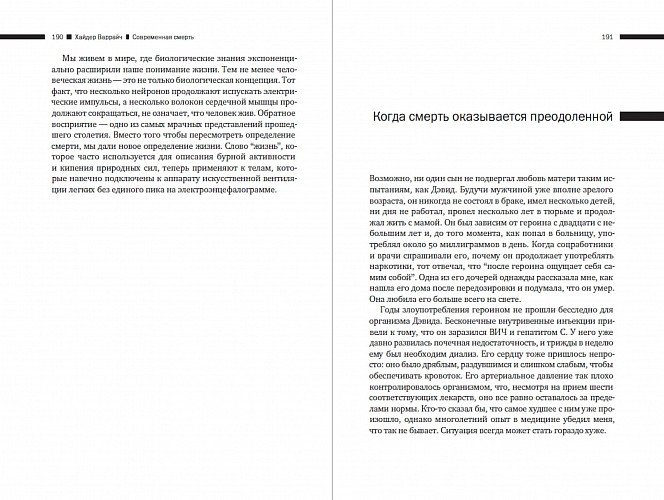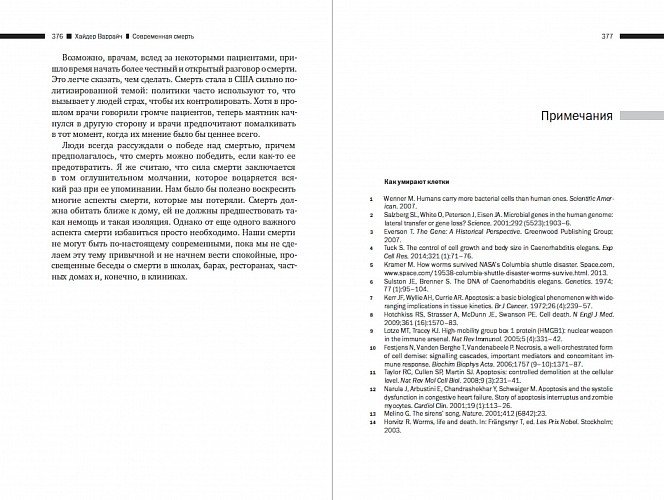 Смерть — самая вечная истина нашей жизни. Кем бы вы ни были, однажды вы наверняка умрете, однако в современную эпоху это происходит по-новому и иначе воспринимается всеми участниками процесса. Молодой американский врач Хайдер Варрайч написал книгу, где постарался дать максимально широкую панораму современной смерти — от молекулярных механизмов программируемой гибели клеток до юридических битв вокруг добровольной эвтаназии неизлечимо больных людей.