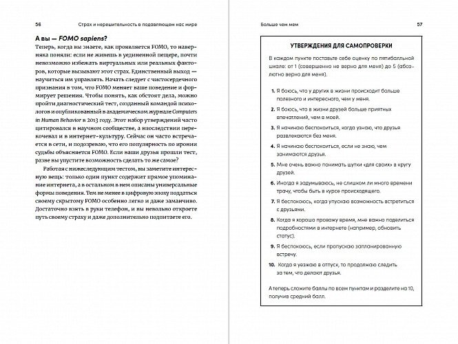 Что вы чувствуете, когда видите фотографии друзей с интереснейших лекций, модных вечеринок или с пляжа под пальмами у голубого моря? Не кажется ли вам порой, что они живут гораздо насыщеннее, интереснее, инстаграмнее, чем вы, а вы постоянно что-то упускаете? Это ощущение называется FOMO (Fear of Missing Out) — страх упущенных возможностей. Если вы часто его испытываете, вас можно назвать представителем FOMO Sapiens.