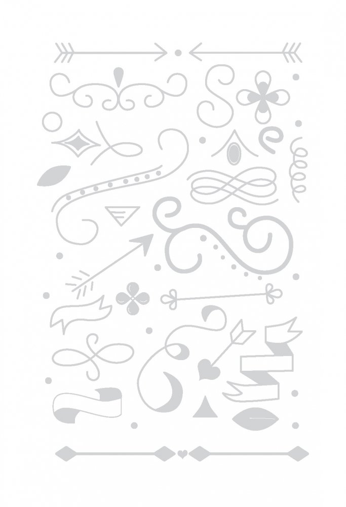 Вначале потренируйтесь в написании фраз на черновике. Положите чистый лист бумаги на шаблон, плотно прижмите и обведите слова по контуру. После этого закрасьте все буквы как на шаблоне. Проделайте то же самое с шаблонами элементов декора.