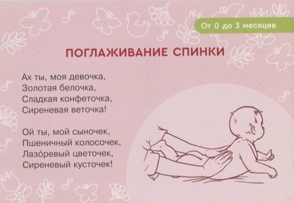 На карточках «Массаж с потешками для грудничка» вы найдете самые популярные приемы массажа и упражнения, которые может выполнить с младенцем любая мама или бабушка. Каждое упражнение сопровождается потешкой, которую легко запомнить и рассказать малышу. Потешка задает нужный ритм движениям мамы и помогает общению с малышом.
