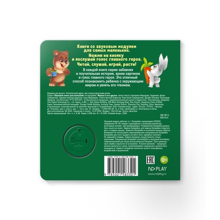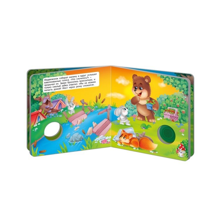 Книги со звуковым модулем для самых маленьких. Нажми на кнопку и послушай голос главного героя. Читай, слушай, играй, расти! В каждой книге серии забавная и поучительная история, яркие картинки и голос главного героя. Это отличный способ познакомить ребенка с окружающим миром и увлечь его чтением. Малыш будет с удовольствием рассматривать яркие страницы и читать историю главных героев книги. Книжка сделана из плотного картона с глянцевой ламинацией, поэтому родители могут не опасаться, что ребёнок порвёт странички. Благодаря компактному формату (15,5х15,5 см) её удобно брать с собой в дорогу. Книжка укомплектована батарейками. Одна кнопка - один звук.