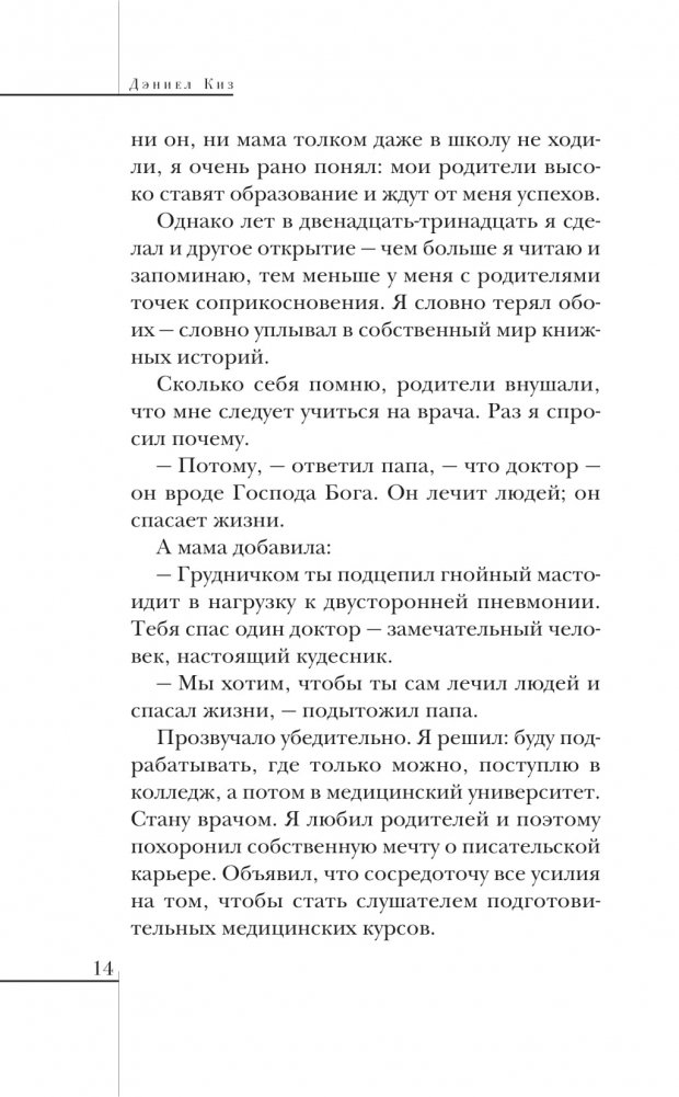 Долгие годы размышлений и труда привели Дэниела Киза к созданию тех культовых романов, о которых сейчас знает буквально весь мир.