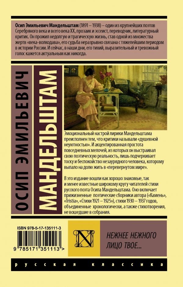 В это издание вошли как хорошо знакомые, так и менее известные широкому кругу читателей стихи русского поэта Осипа Мандельштама. Оно включает прижизненные поэтические сборники автора ("Камень", "Tristia", "Стихи 1921-1925"), стихи 1930-1937 годов, объединенные хронологически, а также стихотворения, не вошедшие в собрания.