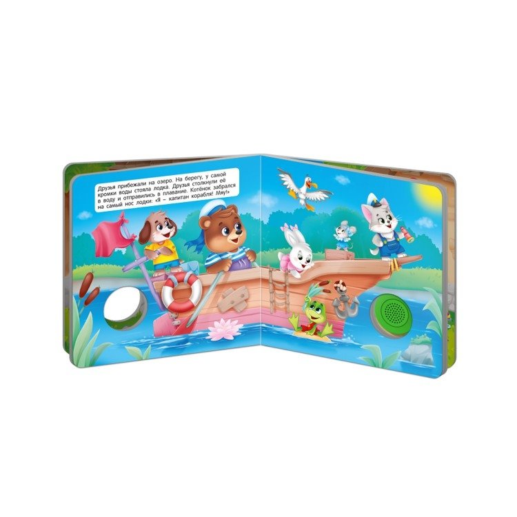 Книги со звуковым модулем для самых маленьких. Нажми на кнопку и послушай голос главного героя. Читай, слушай, играй, расти! В каждой книге серии забавная и поучительная история, яркие картинки и голос главного героя. Это отличный способ познакомить ребенка с окружающим миром и увлечь его чтением. Малыш будет с удовольствием рассматривать яркие страницы и читать историю главных героев книги. Книжка сделана из плотного картона с глянцевой ламинацией, поэтому родители могут не опасаться, что ребёнок порвёт странички. Благодаря компактному формату (15,5х15,5 см) её удобно брать с собой в дорогу. Книжка укомплектована батарейками. Одна кнопка - один звук.