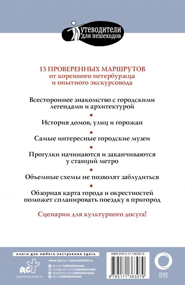 Сергей Бабушкин, автор этого путеводителя - опытный экскурсовод с семилетним стажем. Продолжительность составленных им маршрутов - от 7,5 до 10 км – расстояние, с которым пешеход с книгой в руках справится за 3-4 часа. Прогулки дадут максимально полное представление об архитектуре Петербурга, с Петровской эпохи до 1950-х годов.