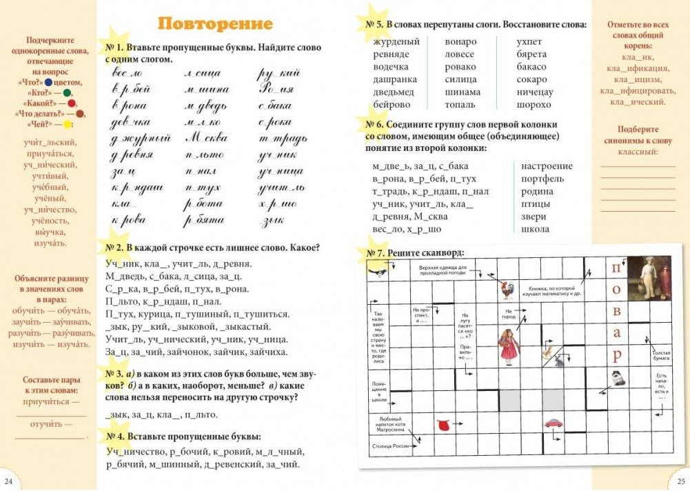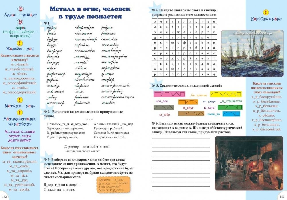 Пособие разнообразит словарную работу на уроках и дома. Материал, приведенный в нем, превратит непростую работу в интересное занятие, расширит представления детей о русском языке. Они узнают, что такое этимология, родственные и устаревшие слова, синонимы… И, конечно, хорошо запомнят сами слова.