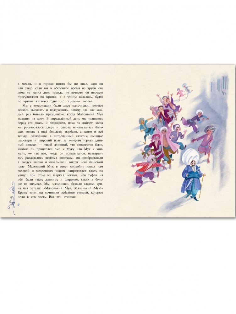 Рассказ о жизни и приключениях Маленького Мука — человека с маленьким ростом и большой головой — одна из самых известных сказок немецкого писателя Вильгельма Гауфа. Сказка рассказана по-восточному ярко. Столь же колоритно сказку проиллюстрировала известный художник Ника Гольц.