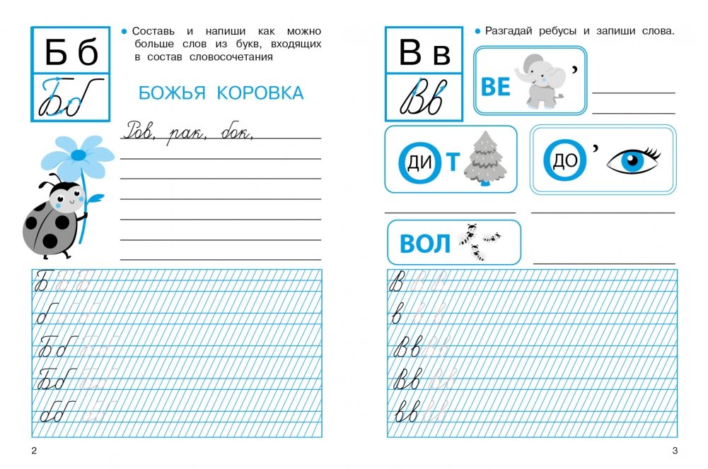 Пособие поможет первоклассникам освоить правильное написание и соединение букв, а разнообразные ребусы, головоломки и шарады разовьют память, внимание, логику и сообразительность.