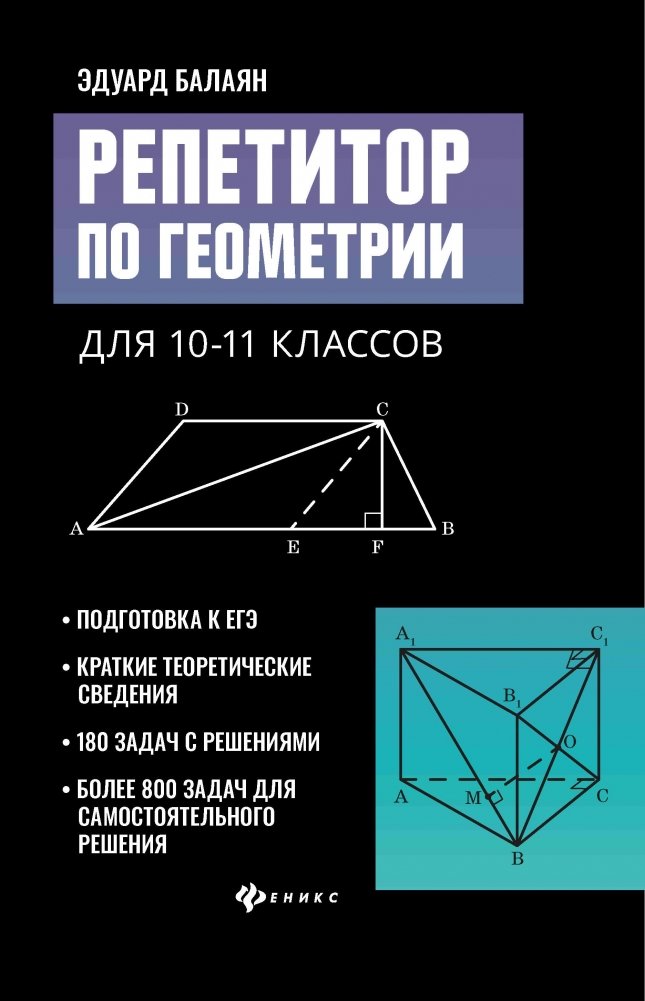 Репетитор предназначен для самостоятельной подготовки к ЕГЭ, а также к урокам геометрии. Рекомендован старшеклассникам и абитуриентам общеобразовательных школ, гимназий, лицеев, слушателям подготовительных отделений вузов, учителям математики, студентам педвузов и репетиторам.