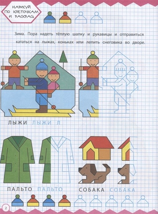 Добро пожаловать в страну увлекательных клеточек, простых текстов и первых букв. Клетка за клеткой, кирпичик за кирпичиком… С этой книжкой ты построишь свой собственный мир, напишешь свои первые буквы и, конечно, преобразишь чёрно-белые рисунки яркими цветами. Книжка-тренажер придется по душе любому. В ней очень много иллюстраций, и любой привереда найдет себе что-то подходящее. Ничего трудного – выбирай, обводи, раскрашивай и копируй картинки по клеточкам! А также читай простые и занимательные предложения и выводи карандашом настоящие буквы! Рисуй по клеточкам!