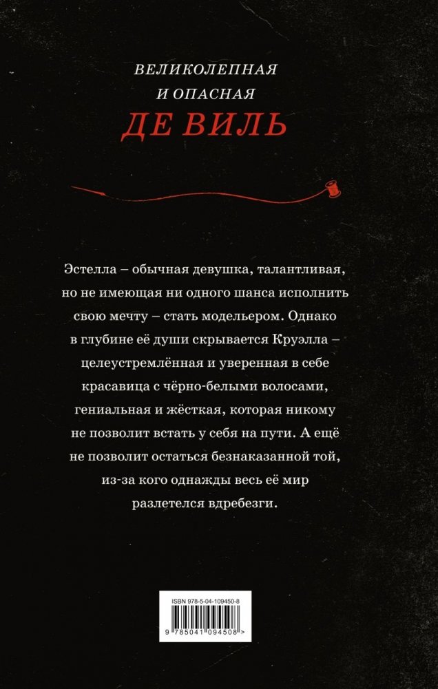 Эстелла была необычным ребёнком. Во-первых, конечно, волосы – одна половина головы белая, а другая чёрная. А ещё у неё был невероятный талант – с юных лет Эстелла могла создавать умопомрачительные наряды, поражающие воображение. Несложно догадаться, что завести друзей Эстелле было не так просто, и поэтому часто на первый план выходила Круэлла – так называла мама Эстеллы уверенную, но несколько жестокую сторону своей дочери. Но маме было невдомёк, что когда-нибудь именно эта часть Эстеллы поможет ей выжить и воплотить в реальность свои самые смелые мечты. А ещё отомстить той, кто должна была открыть Эстелле дорогу в большой мир, а вместо этого разрушила её жизнь…