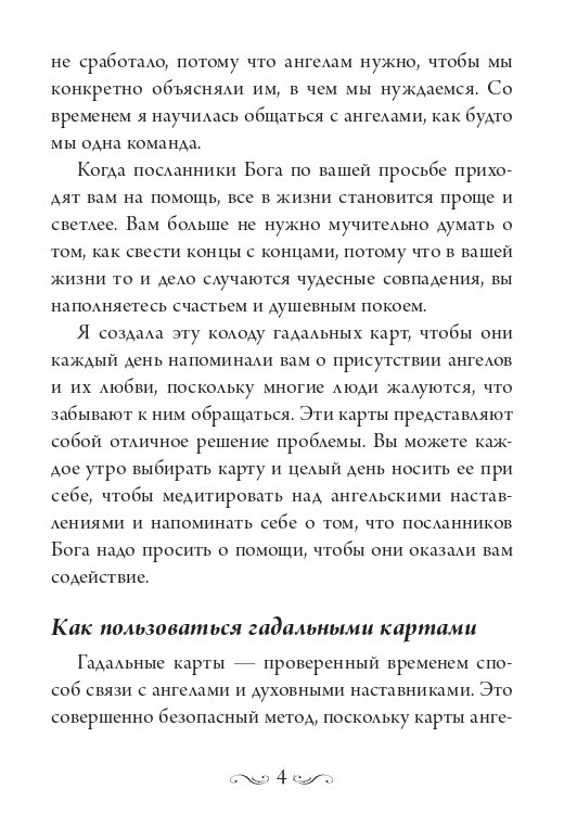 А вы знали, что у каждого из нас есть ангел-хранитель, который оберегает нас от всех напастей и в трудные минуты призывает других ангелов нам на помощь? Эти прекрасные существа в любой момент готовы помочь вам в решении больших и малых проблем. Они только и ждут, чтобы вы дали им задание! Вы не знаете, как к ним обратиться? Специально для этого ясновидящая Дорин Вирче создала свои уникальные наборы карт, благодаря которым вы каждый день сможете получать подсказки, предостережения и добрые советы от ангелов. Приятного вам общения!
